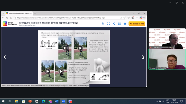 До семінару долучилися керівник фізичного виховання Юлія ПРОКОПЕНКО та кандидат наук з фізичного виховання і спорту, доцент Тетяна КУДРЯШОВА, яка презентувала учасникам авторський електронний навчально-методичний посібник «Методика навчання техніки бігу на короткі дистанції». Посібник містить поетапний алгоритм навчання, підготовчі та підвідні вправи, відеоматеріали з техніки виконання, варіанти контролю й тестування, а також рекомендації щодо індивідуалізації занять. Він викликав значну зацікавленість у професійної спільноти, оскільки дає змогу зробити заняття більш наочними, мобільними та ефективними навіть у дистанційному чи змішаному форматах навчання.