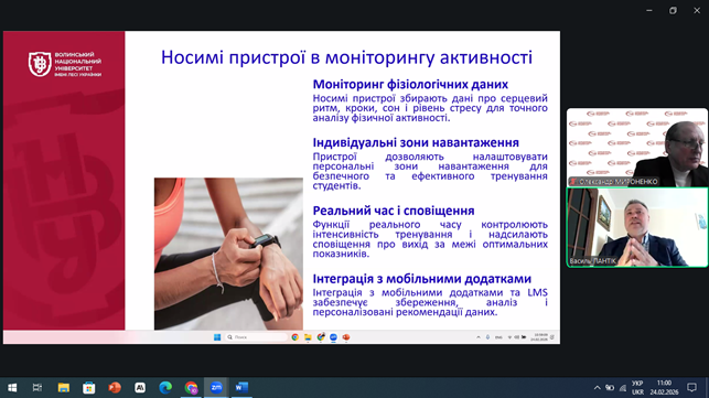 Модератор заходу Олександр МИРОНЕНКО, методист ДУ «Науково-методичний центр вищої та фахової передвищої освіти», відкрив зустріч, підкресливши актуальність інтеграції ІТ-інструментів у процес фізичного виховання, важливість формування цифрових компетентностей у викладачів та необхідність адаптації методики викладання фізичного виховання до вимог інноваційного освітнього середовища.