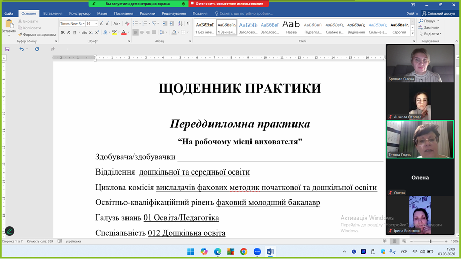 09 березня 2026 року проходила установча конференція з виробничої практики для здобувачів фахової передвищої освіти за спеціальністю 012 Дошкільна освіта. Упродовж березня–квітня 2026 року студенти групи ДО-21Фз (2 курс) освітньої програми «Дошкільна освіта» (скорочений термін навчання) проходять виробничу практику «На робочому місці вихователя» у закладах дошкільної освіти.