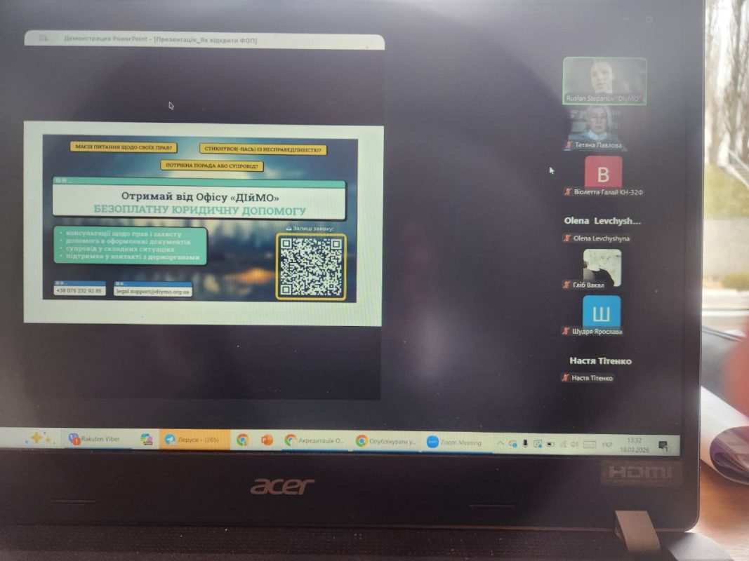 Величезна подяка неймовірним юристам з Офісу дітей і молоді «ДІйМО» — Олені Левчишиній та Руслану Степанову, які провели вебінар на тему «Як відкрити ФОП і не наробити помилок?»