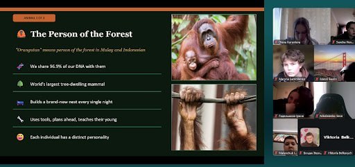 💬“I really enjoyed this meeting because it was incredibly interesting and informative. Alex talked fascinatingly about different species of wild, existing, extinct, ancient, absolutely unique and curious animals. It was really fascinating!” – Nataliia