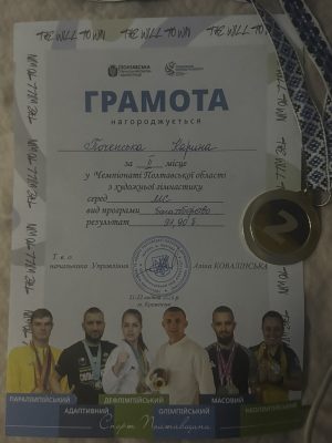 Здобувачка передвищої освіти групи ФКС-21Ф Каріна ПОЧЕПСЬКА виборола «срібло» у багатоборстві на чемпіонаті області з художньої гімнастики. Серед 20 учасниць, у шаленій конкуренції та під час відбору на чемпіонат України, Каріна продемонструвала блискучий результат і впоралася на всі 100%.
