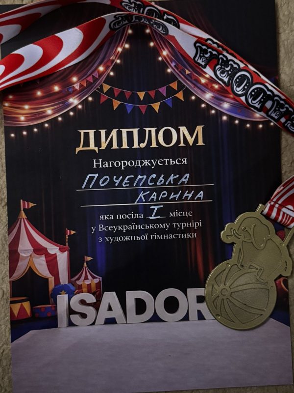 яка взяла участь у Всеукраїнському турнірі з художньої гімнастики «Isadora» та виборола І місце!Бажаємо не зупинятися на досягнутому, упевнено крокувати до нових вершин, легких тренувань, яскравих виступів, натхнення та ще багатьох перемог. Нехай кожен виступ приносить радість, гордість за власні результати й відкриває нові можливості для розвитку💙💛!