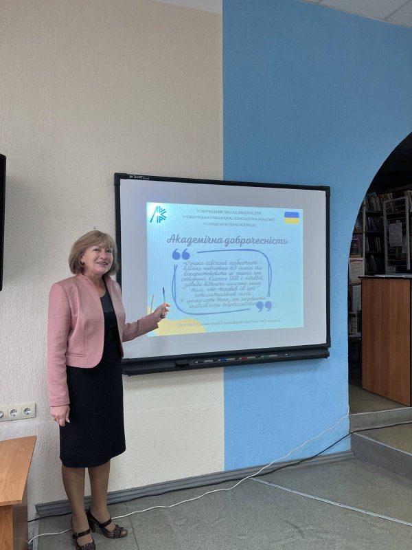 Сьогодні, у Всеукраїнський день бібліотек, у читальній залі Кременчуцької гуманітарно-технологічної академії відбулася важлива подія: студенти груп ДО-11Ф та УМ-11Ф фахового коледжу академії підписали «Декларацію учасника освітнього процесу щодо дотримання академічної доброчесності». Зі щирими словами підтримки та натхнення до здобувачів освіти звернулася Голова комісії з етики та академічної доброчесності академії — Галина Олександрівна Шкляєва. Її виступ […]